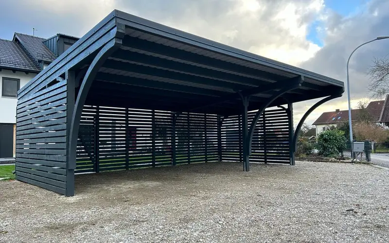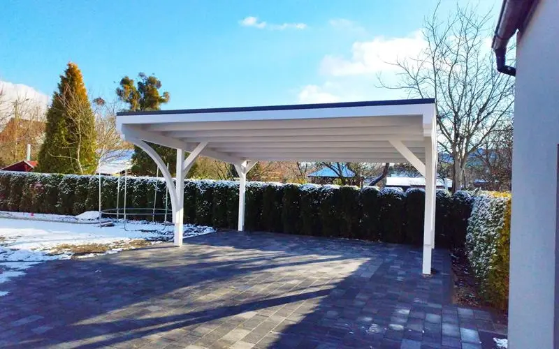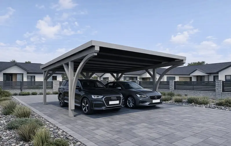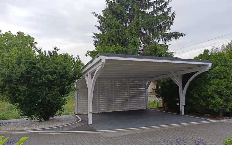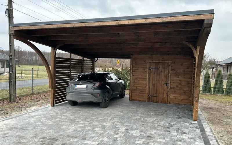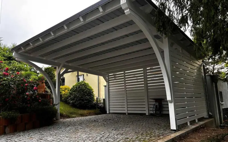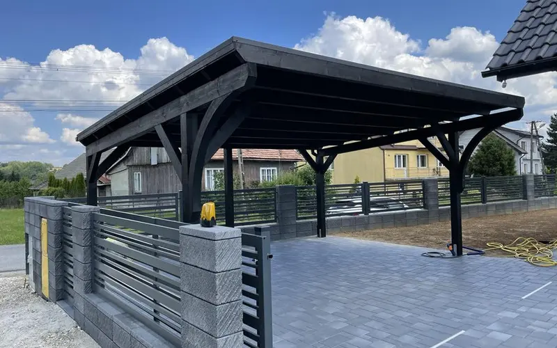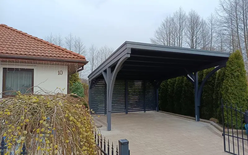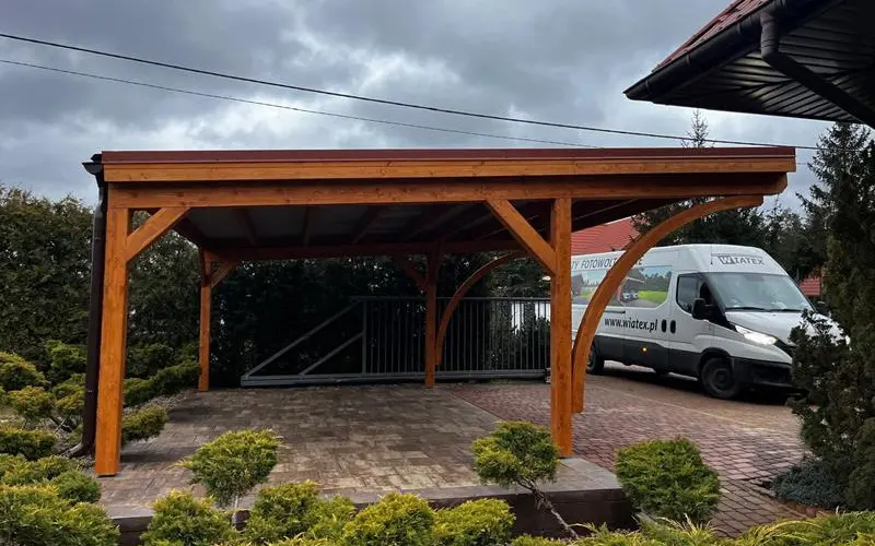 Na uwagę zasługuje również estetyka. Stalowe rynny prezentują się zdecydowanie solidniej i bardziej profesjonalnie niż ich plastikowe odpowiedniki, co podnosi standard całej inwestycji. Wybierając wiaty Wiatex, masz pewność, że zastosowany system odwodnienia dorównuje jakością pozostałym materiałom klasy premium.