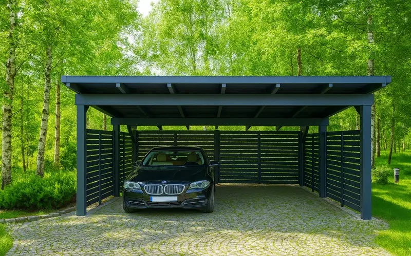 Nowoczesny wygląd wiaty Oregon doda powiewu świeżości w każdym ogrodzie. Dzięki możliwości zabudowy ścian, wiata posiada wiele możliwości aranżacji. Carport 6×5 z możliwością konfiguracji – standardowe dane techniczne przedstawiamy powyżej. Oregon to idealna wiata drewniana 6×5 montowana w nowoczesnej zabudowie mieszkaniowej.