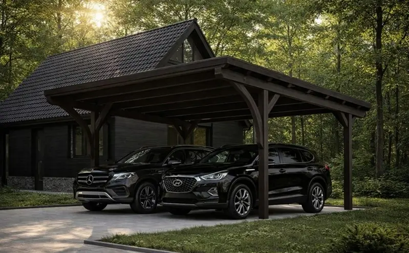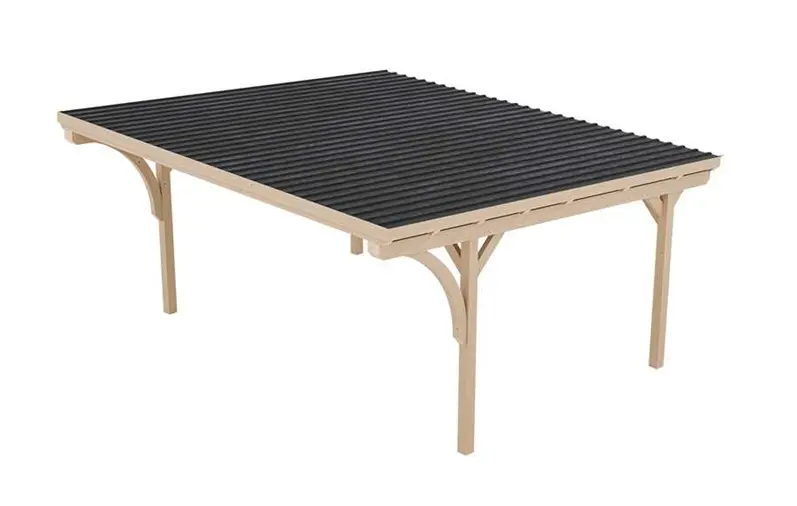 Smart 6 to wiata garażowa na 2 auta, która charakteryzuje się bardzo atrakcyjną ceną. Jest to produkt przeznaczony dla osób, które chcą samodzielnie złożyć carport i skonfigurować go według własnych potrzeb. W zestawie otrzymujecie Państwo wyciętą konstrukcję wiaty, zadaszenie w postaci blachy trapezowej lub poliwęglanu oraz niezbędne do złożenia konstrukcji akcesoria ciesielskie. Carport należy pomalować samodzielnie na wybrany kolor z palety RAL dowolną farbą do drewna. Za dodatkową opłatą konstrukcja może być pomalowana przez ekipę Wiatex.