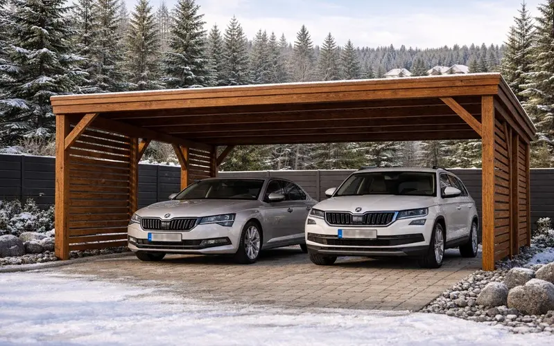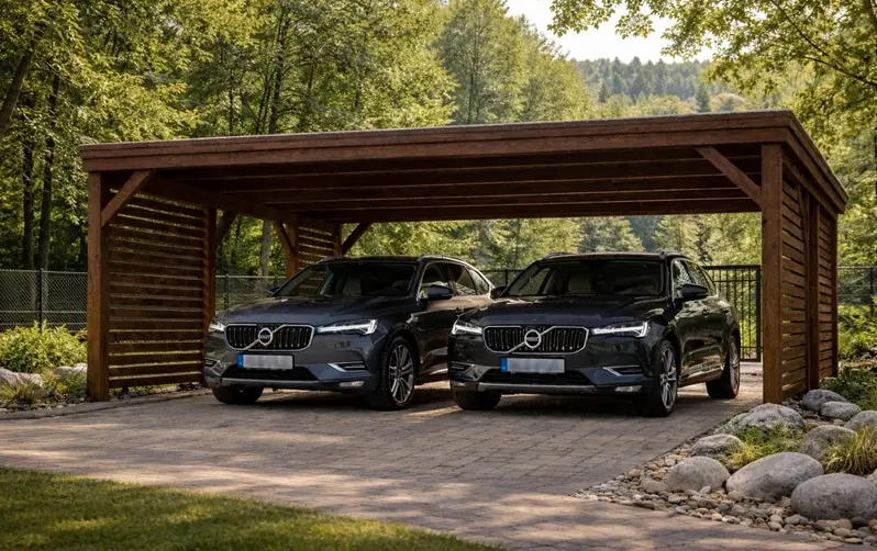 Częsty komentarz pół-żartem, pół-serio: wiata porządkuje przestrzeń i sprawia, że auta prezentują się dużo lepiej niż na otwartym podjeździe. Samochody wyglądają jak na prezentacji w Showroomie.