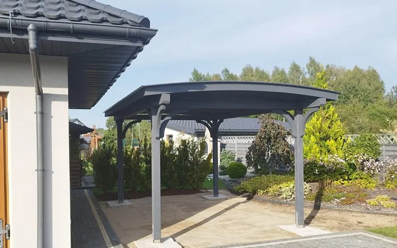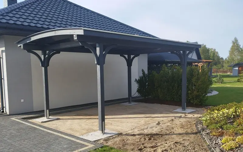 Wiata garażowa może być spersonalizowana pod Państwa potrzeby zwłaszcza jeśli chodzi o kolorystykę konstrukcji drewnianej .