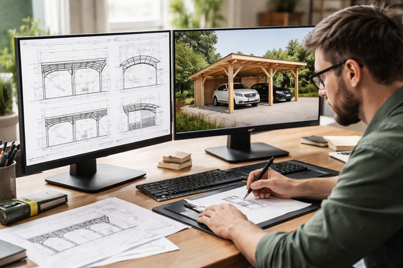 Dzięki zespołowi projektowemu możemy zbudować dla Państwa wiatę garażową na wymiar co do centymetra. Nasi projektanci naturalnie dokonają wszelkich obliczeń, aby statyka obiektu była w granicach norm.