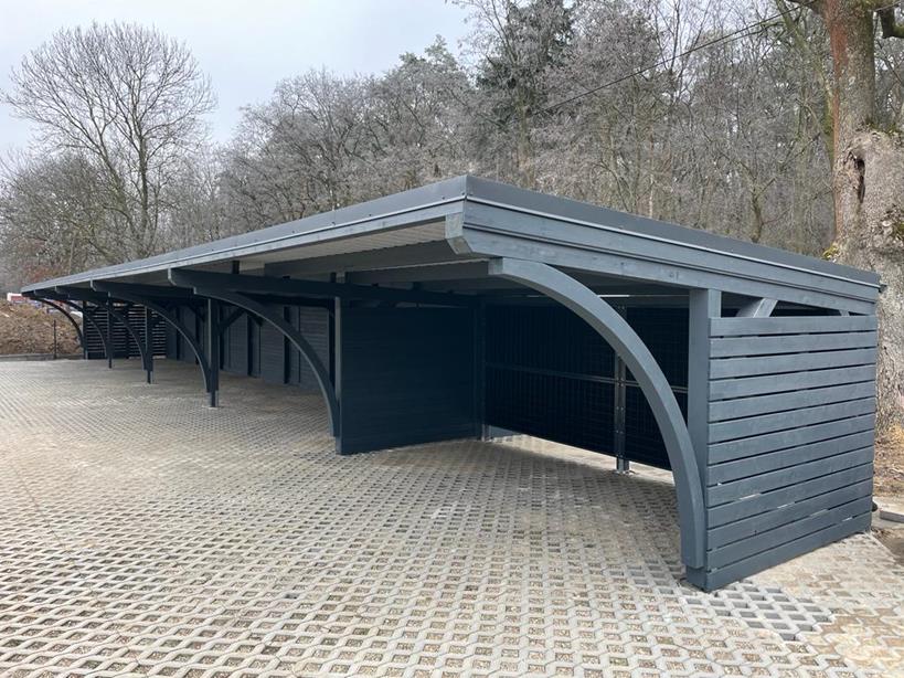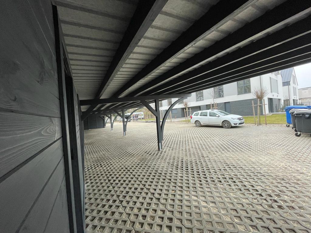 - Szeregowe lub wolnostojące zadaszenia miejsc parkingowych