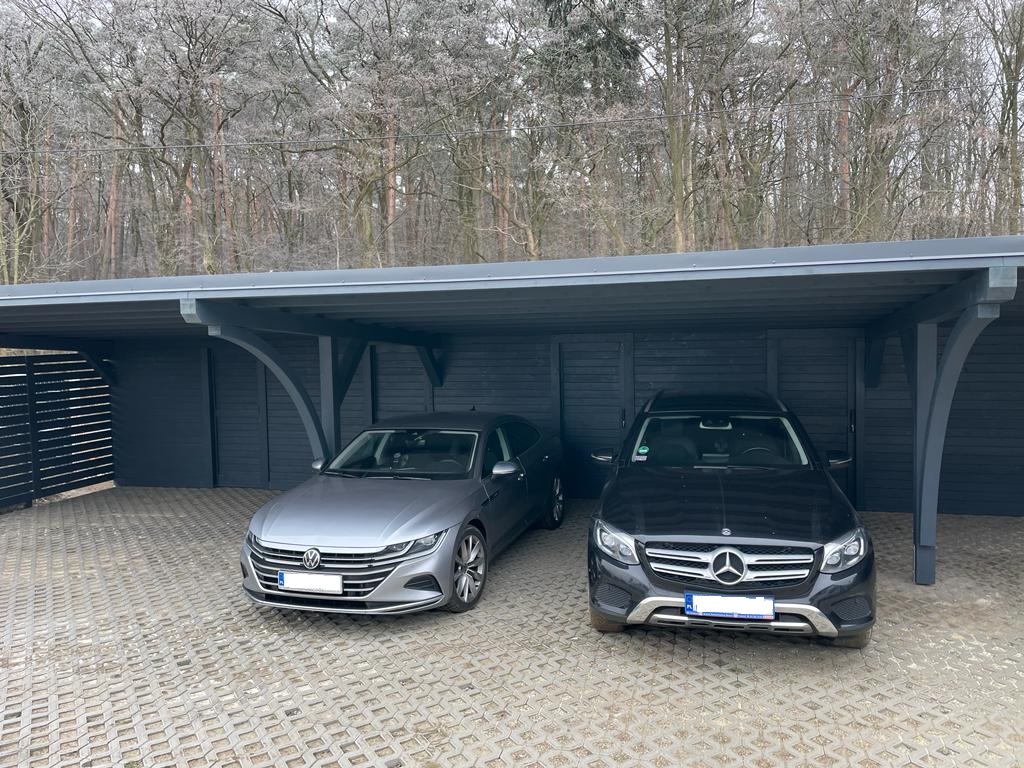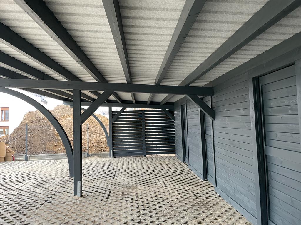 - Możliwość instalacji paneli fotowoltaicznych na dachu zadaszenia